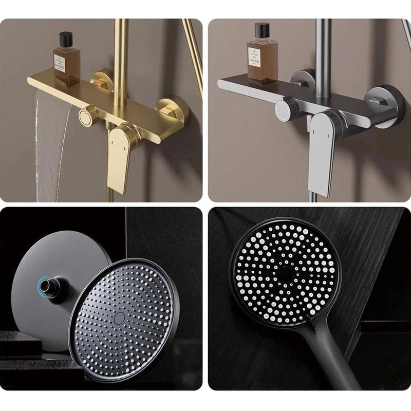 Symbole de luxe et de raffinement, les colonnes de douche or et dorées transforment la salle de bain en un espace prestigieux.