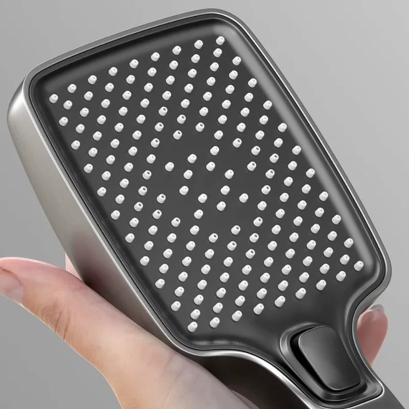 - Les buses anti-calcaire : Les têtes de douche sont équipées de picots en silicone souple. Si le débit diminue, pas besoin de produit : frottez simplement les picots avec votre pouce sous l'eau. L'action mécanique suffit à briser et expulser le tartre accumulé.