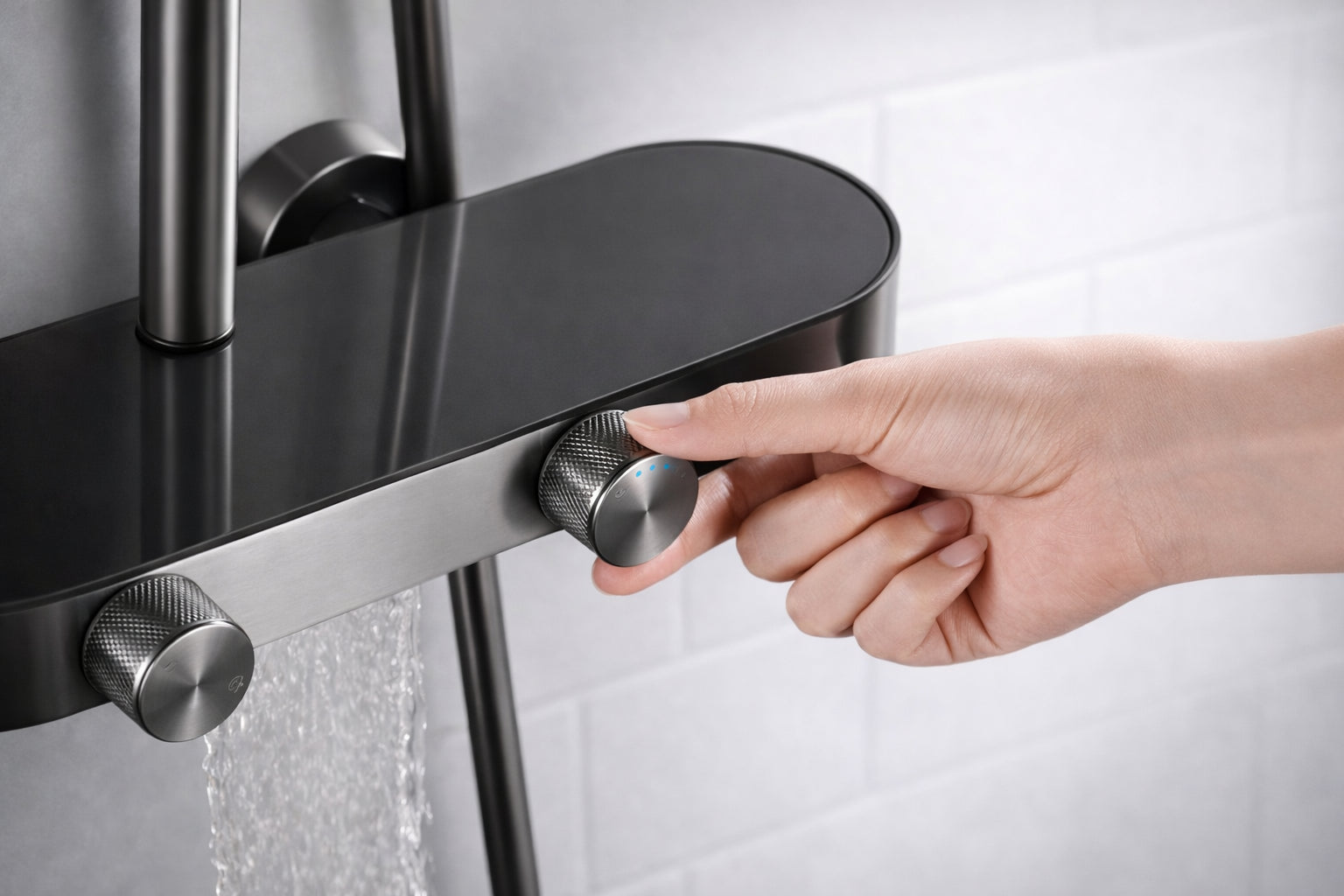 - L'ergonomie : Les poignées sont conçues pour offrir une bonne prise en main (grip), permettant un réglage facile et sans effort, même avec les mains mouillées ou savonneuses.